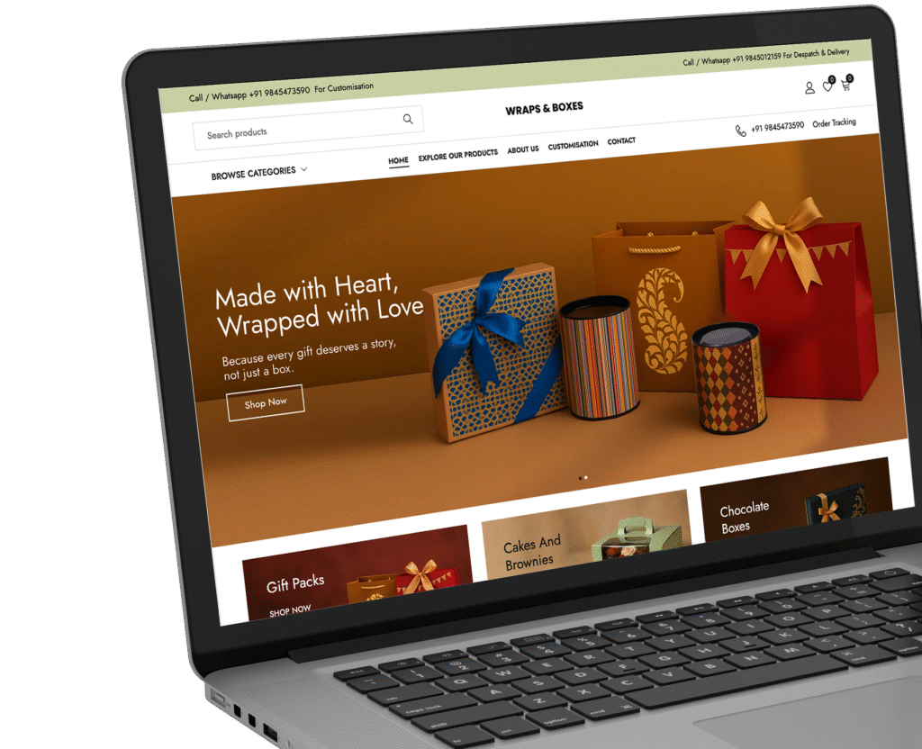 Designed and developed a custom eCommerce platform for Wraps & Box, a premium packaging solutions company
